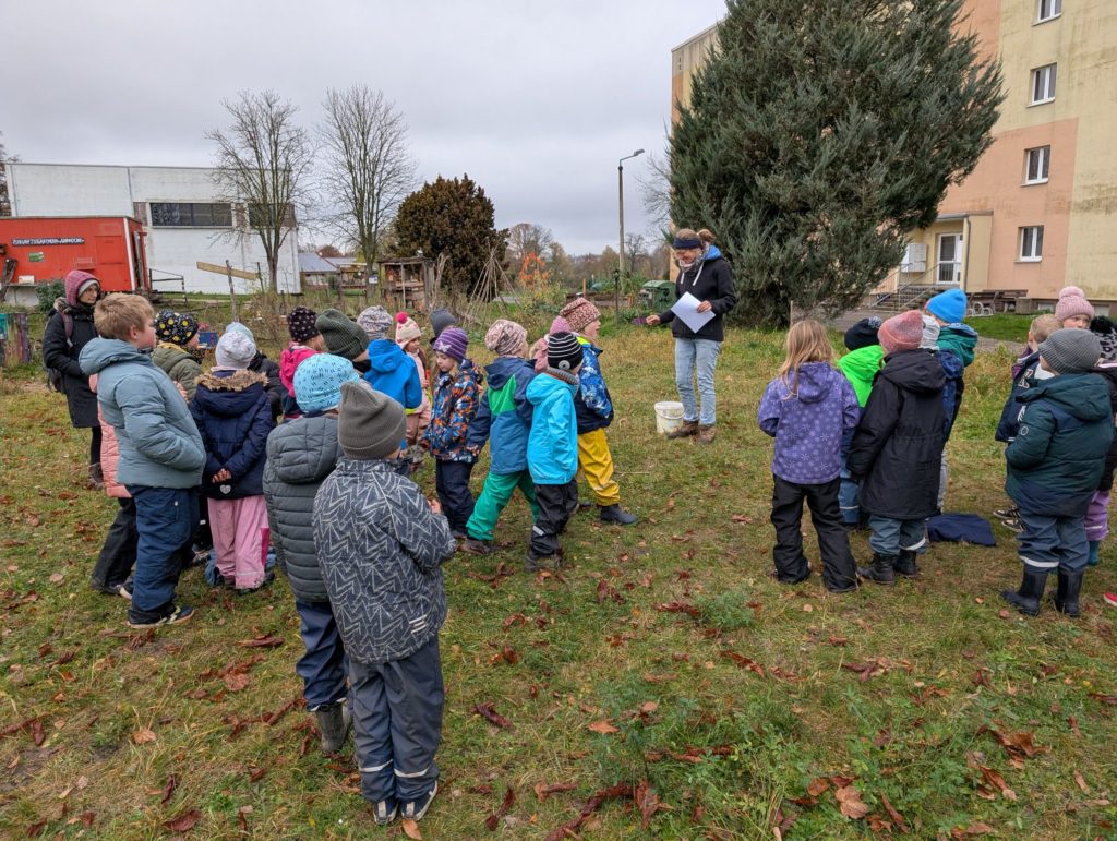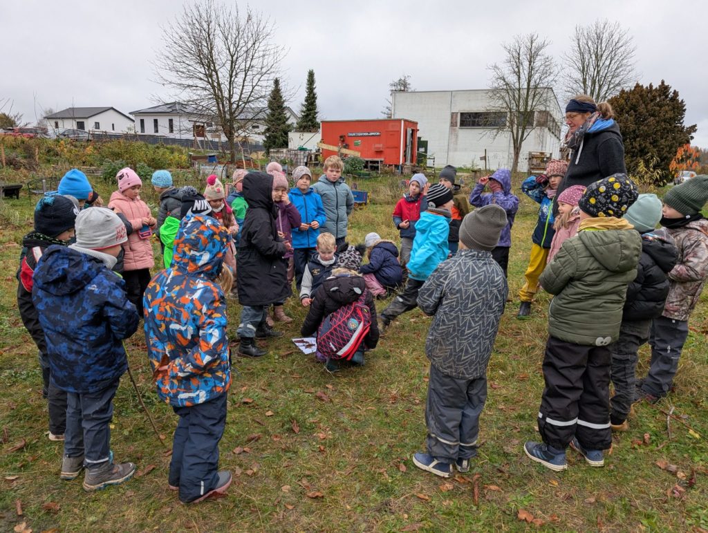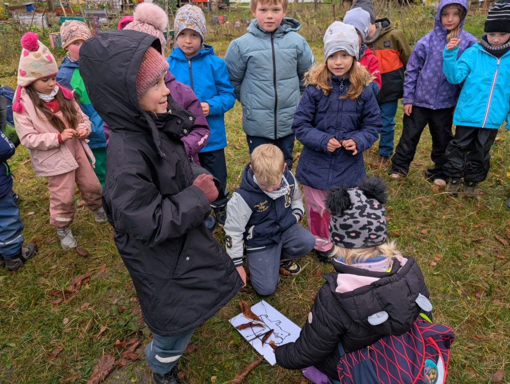 An einem kühlen Novembermontag war es endlich soweit – die 1. Klasse trat ihren ersten Wandertag zum Zukunftsgarten in Borna an und wollte dort und auch auf dem Weg dorthin mehr zum Sachunterrichtsthema Igel herausfinden.