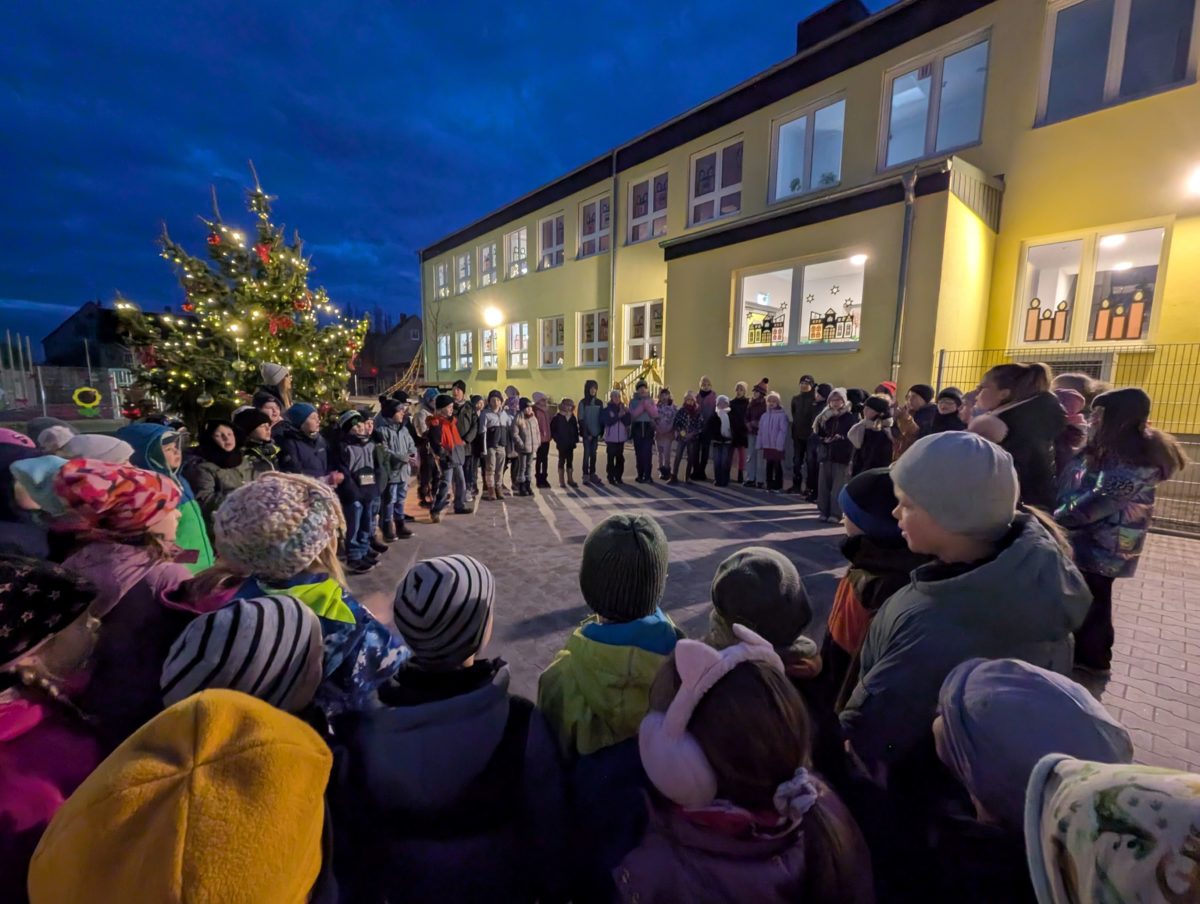 Der beleuchtete Weihnachtsbaum auf dem Schulhof lädt täglich zum Singen ein und wir stimmen uns mit Weihnachtsmelodien schon jetzt auf auf den 24. Dezember ein. Auch die Klassenzimmer erstrahlen in warmem Glanz, Kalendertürchen werden geöffnet und Kinderaugen strahlen – das alles macht diese Zeit für uns ganz besonders.