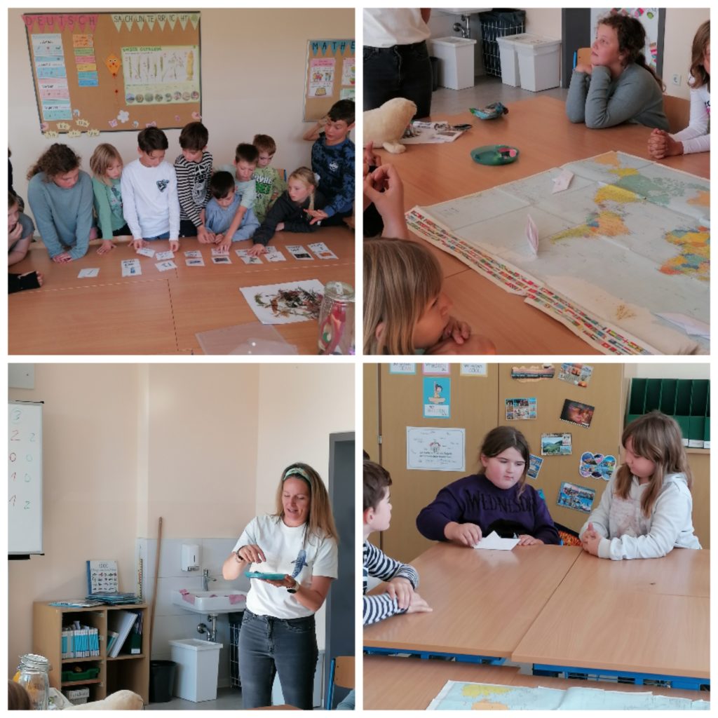 👫 Die Klassen wurden dafür jahrgangsübergreifend eingeteilt: Die Kleinen aus Klasse 1 und 2 arbeiteten zusammen, genauso wie die Großen aus Klasse 3 und 4. Jede Gruppe hatte ein eigenes Umweltthema und durfte kreativ, praktisch und mit viel Neugier forschen, basteln, ausprobieren und gestalten.