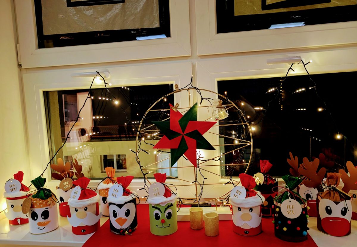 Pünktlich zum 1. Dezember und pünktlich zum ersten Türchen tauchten im Klassenzimmer der 1. Klasse plötzlich viele bunt und weihnachtlich gestaltete Dosen auf. Merkwürdig waren auch die Spuren unter der Kamera und überall auf der Tafel.